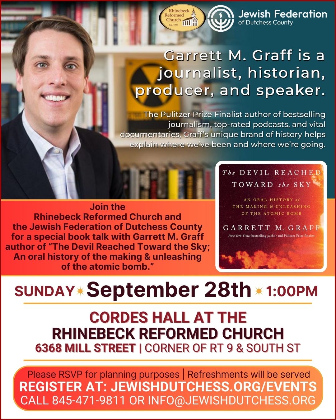 Join the Rhinebeck Reformed Church and the Jewish Federation of Dutchess County for a special book talk with Garrett M. Graff, author of
