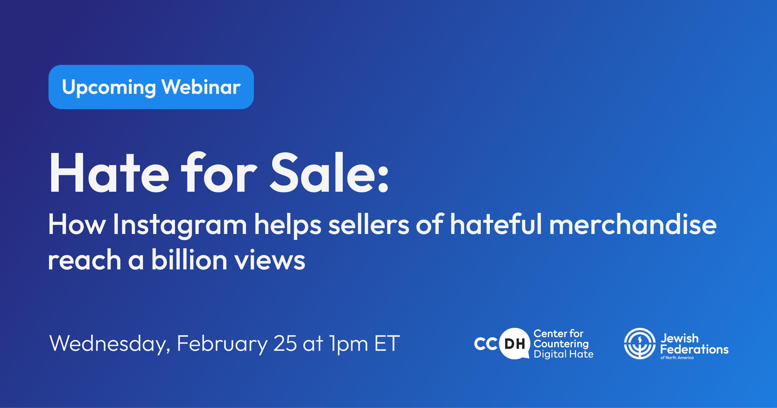 Please join Jewish Federations CEO, Eric Fingerhut, and the Center for Countering Digital Hate CEO, Imrad Ahmed, in a discussion about our joint report highlighting how Instagram and e-commerce platforms are amplifying and monetizing racism, antisemitism and “hate merch”. In this webinar, they will also discuss the current state of antisemitism on social media, and steps we've taken to make the internet a safer place for Jewish kids, and all kids.