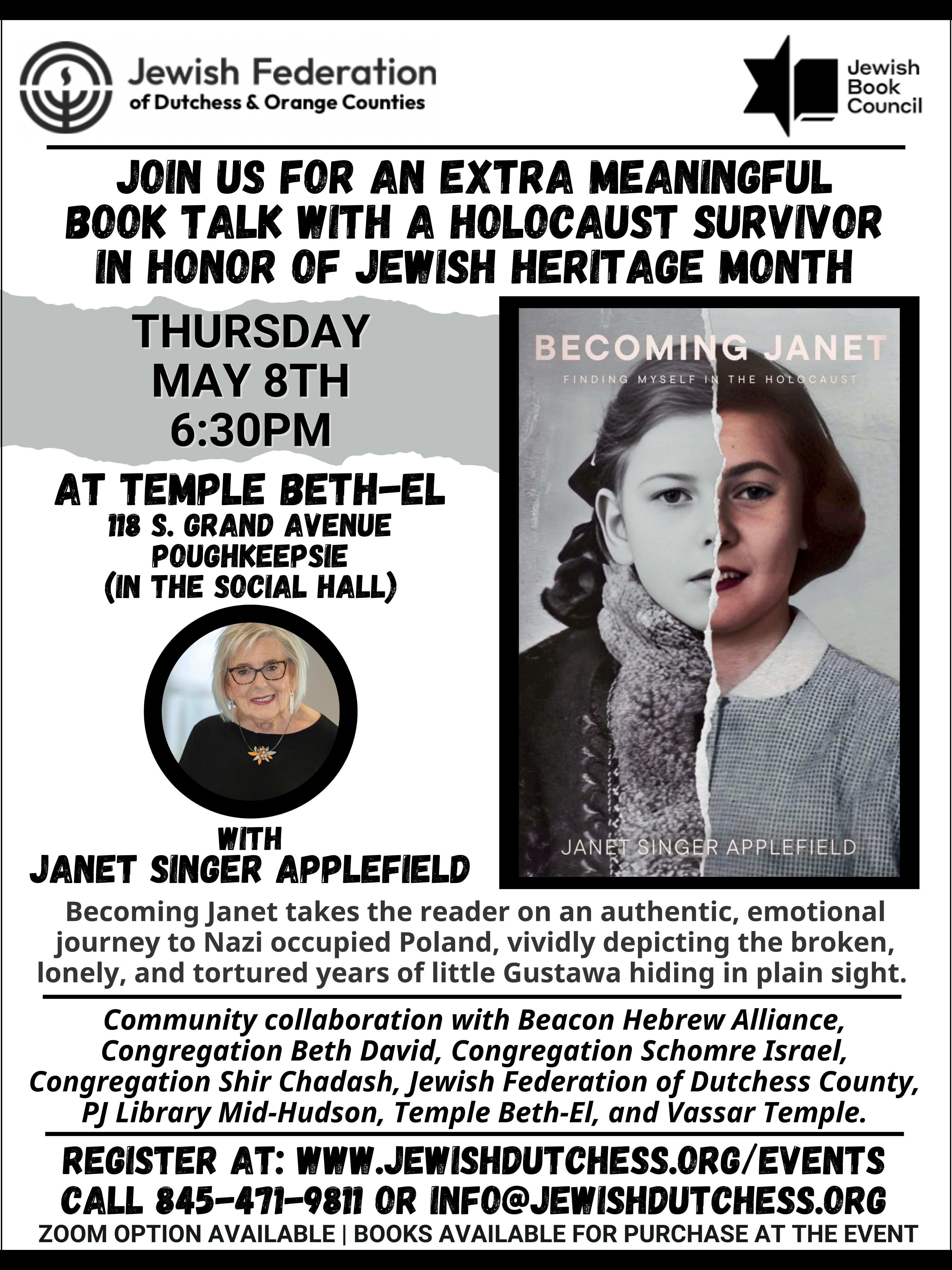Beacon Hebrew Alliance, Congregation Beth David, Congregation Schomre Israel, Congregation Shir Chadash, Jewish Federation of Dutchess & Orange Counties, PJ Library Mid-Hudson, Temple Beth-El, and Vassar Temple.