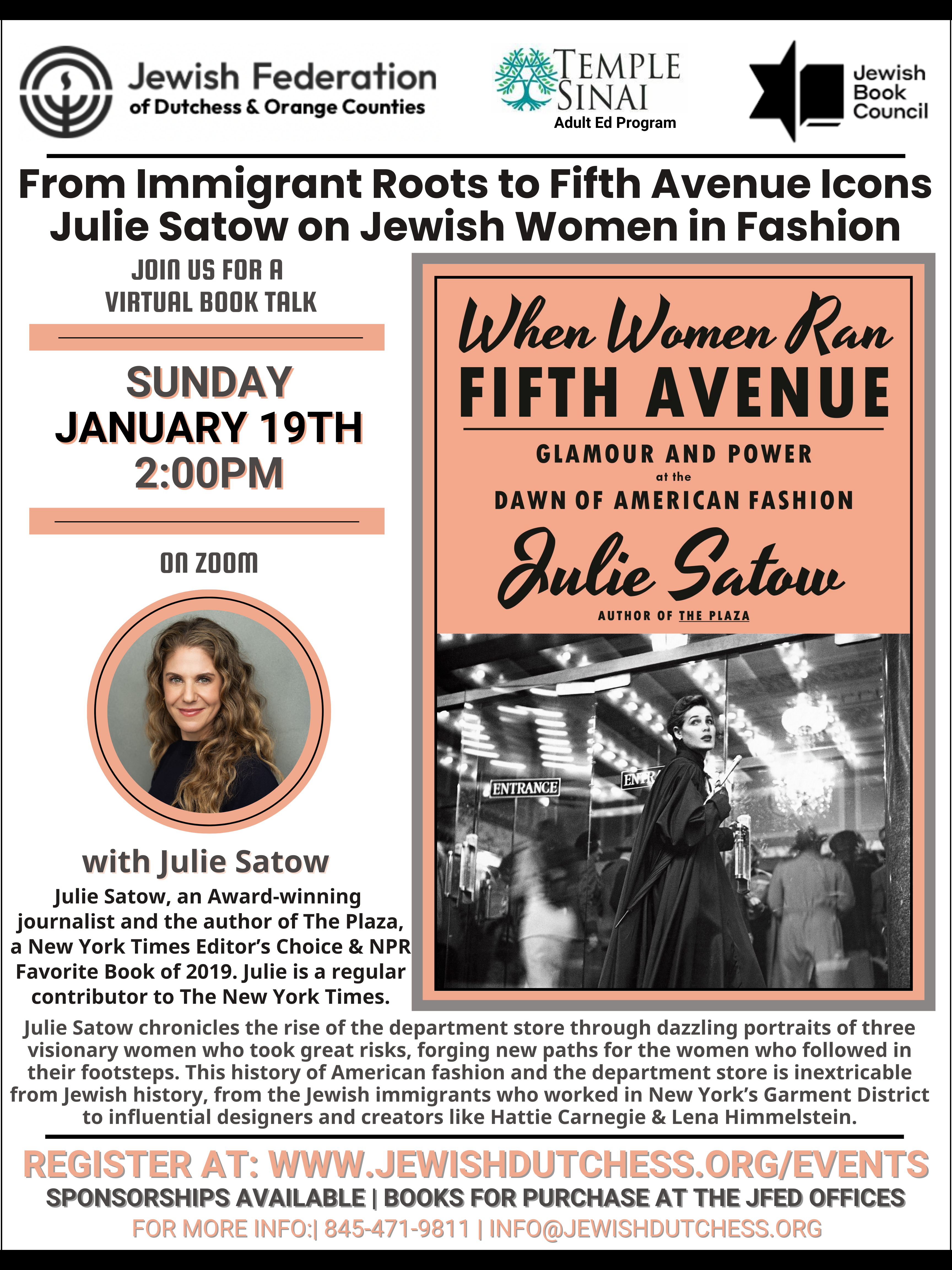 This history of American fashion and the department store is inextricable from Jewish history, from theJewish immigrants who worked in New York’s Garment District to influential designers and creators likeHattie Carnegie and Lena Himmelstein (better known as the creator of Lane Bryant). These stories areinterwoven throughout Satow’s glittering account of a bygone era of innovation and glamour.