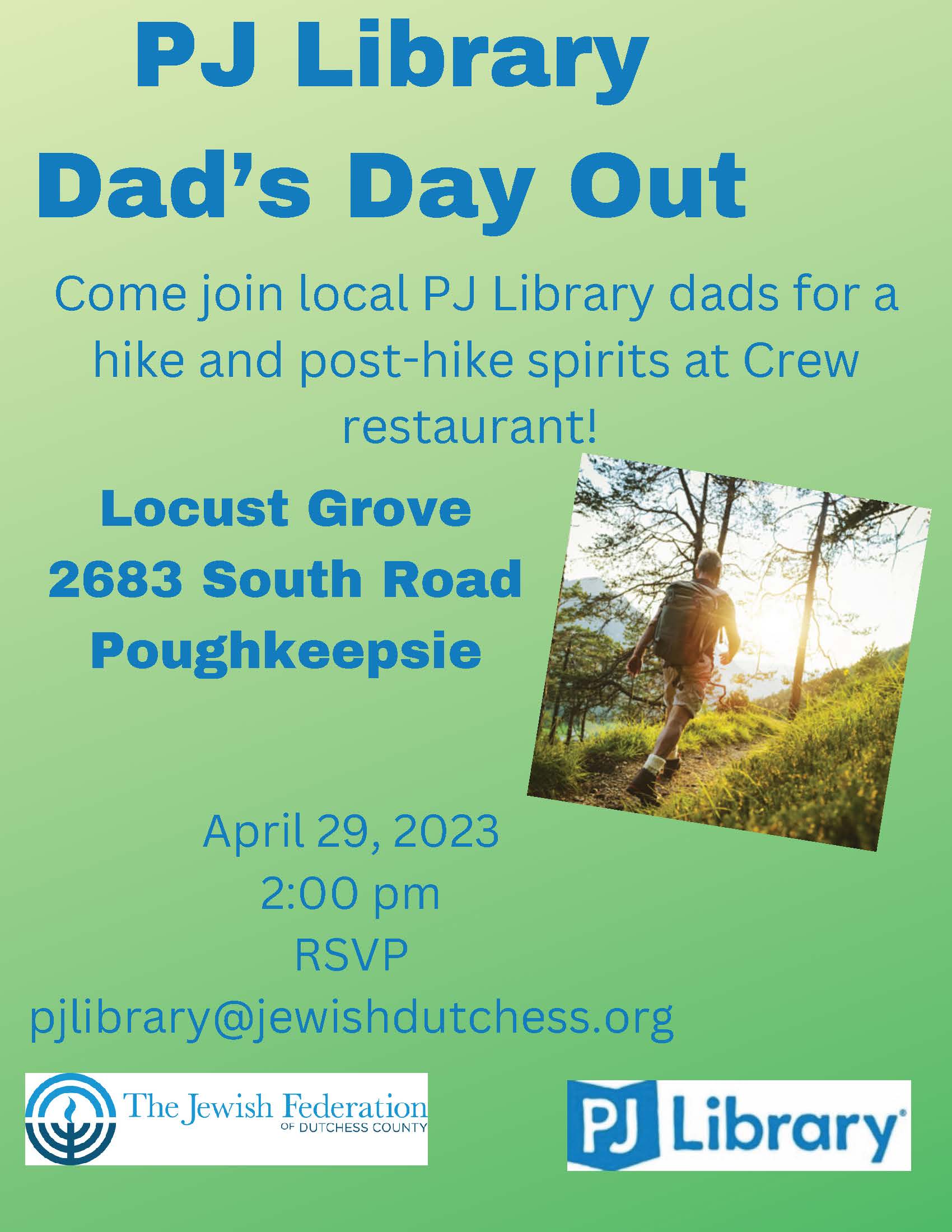 NEW DATE!!! PJ Library Dad's Day Out! Come join local PJ Library dads for a hike & post-hike spirits at Crew restraunt!