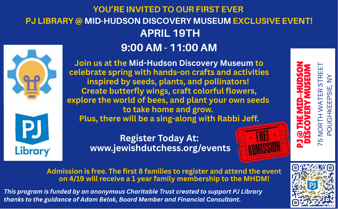 You’re Invited To our First Ever PJ Library @ Mid-Hudson Discovery MUSEUM EXCLUSIVE Event!