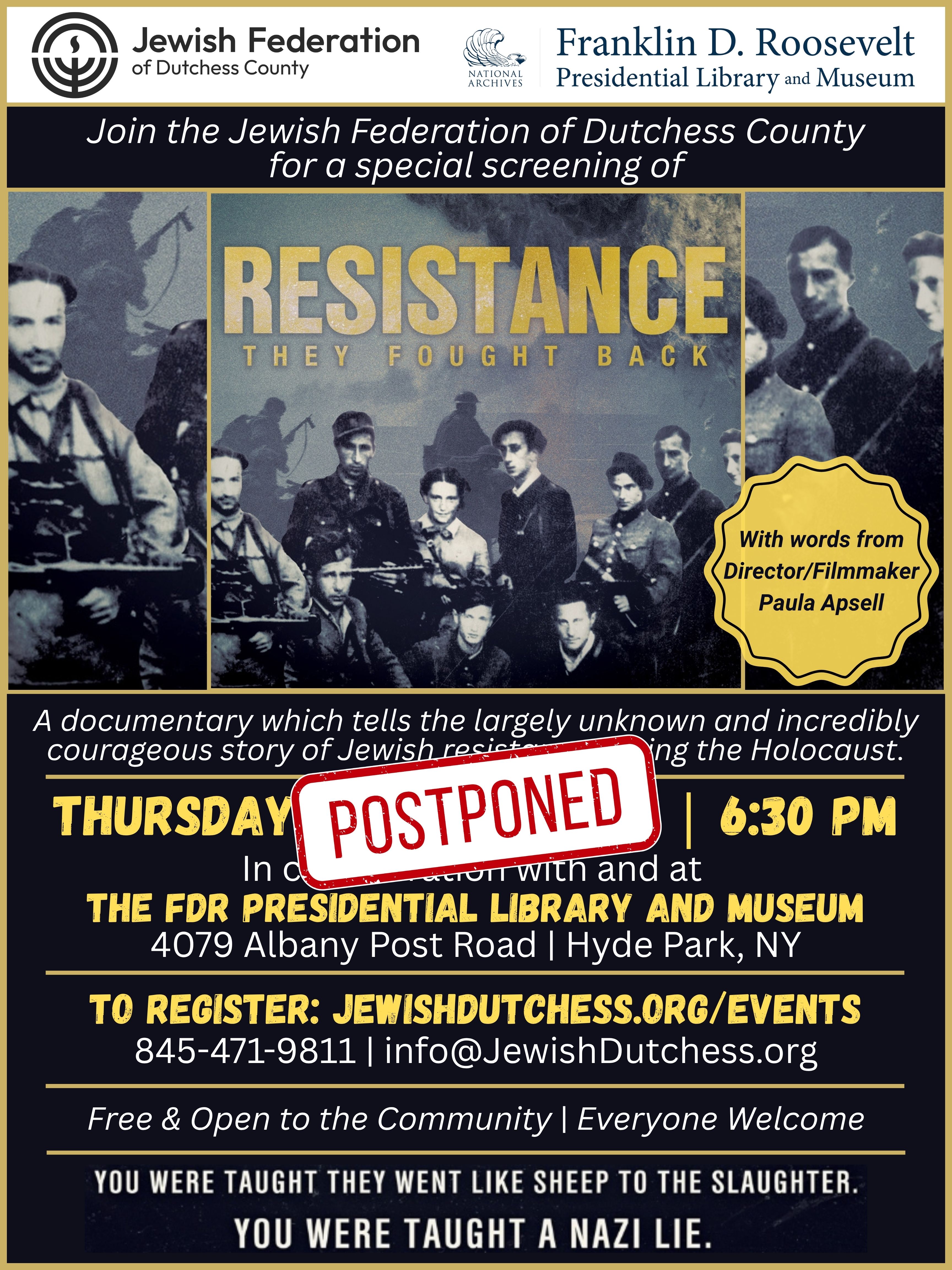 STAY TUNED TO WWW.JEWISHDUTCHESS.ORG/EVENTS FOR NEW DATE