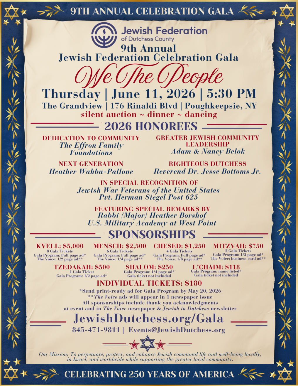 Chesed ($1,250): Jack Effron | Fredrica & Jack Goodman | KeyBank | Betsy Kopstein-Stuts